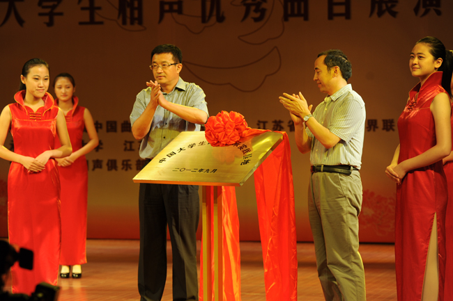 展演前,中国曲艺牡丹奖组委会授予河海大学“中国大学生曲艺传承实践基地”,王济干副书记和曲华江副秘书长共同为基地揭牌。