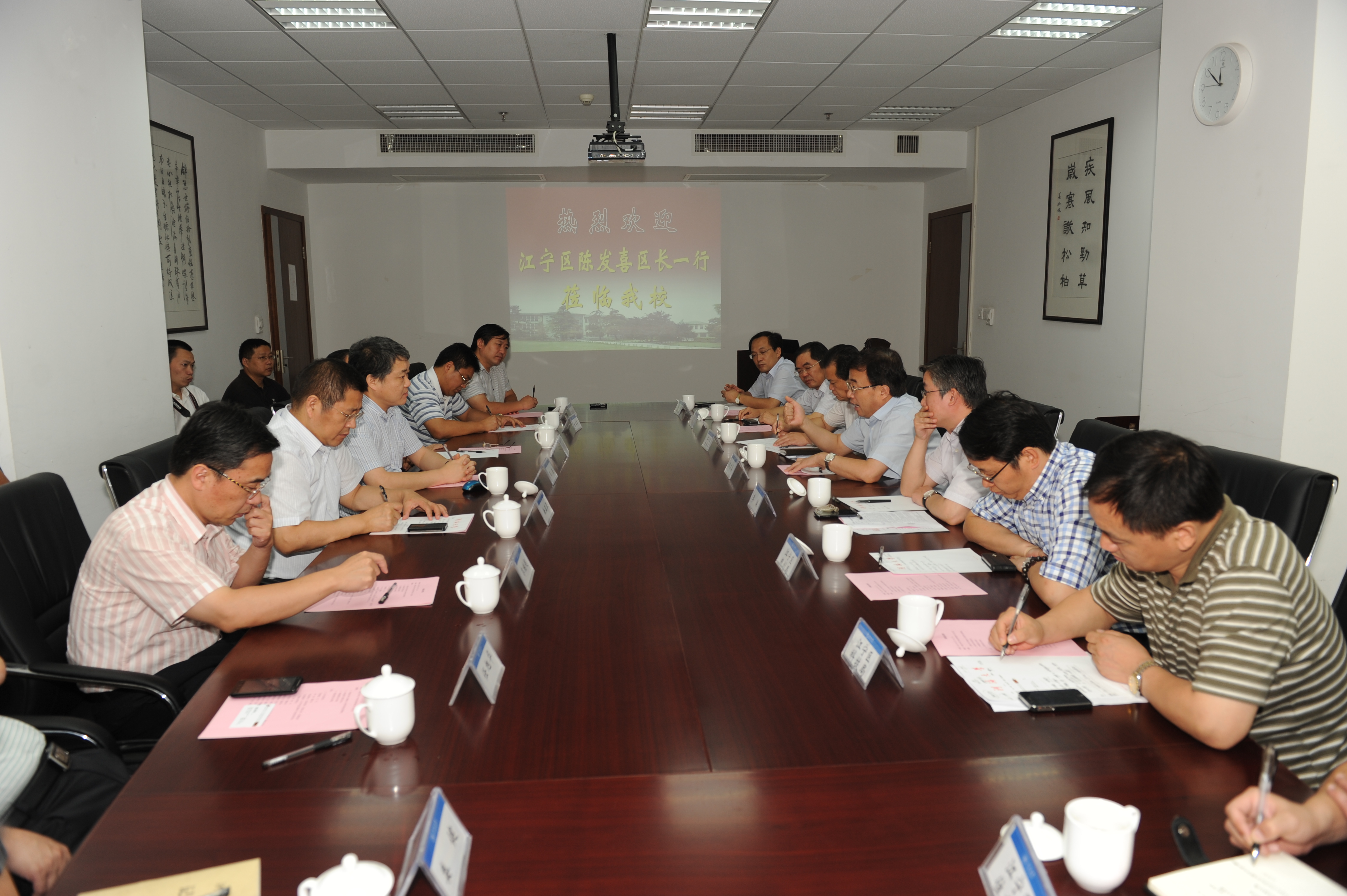 9月12日,南京市江宁区陈发喜区长一行到我校江宁校区开展“三个服务”调研走访活动,受到王乘校长、李乃富副校长和徐卫亚副校长等校领导的热情接待。