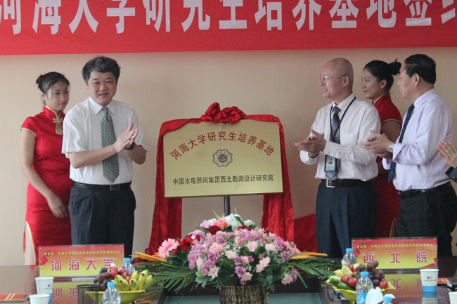 9月21日,河海大学与中国水电顾问集团西北勘测设计研究院共建研究生培养基地签约暨揭牌仪式在西安举行,河海大学校长、研究生院院长王乘和西北院院长马海晨共同为研究生培养基地揭牌并签约。