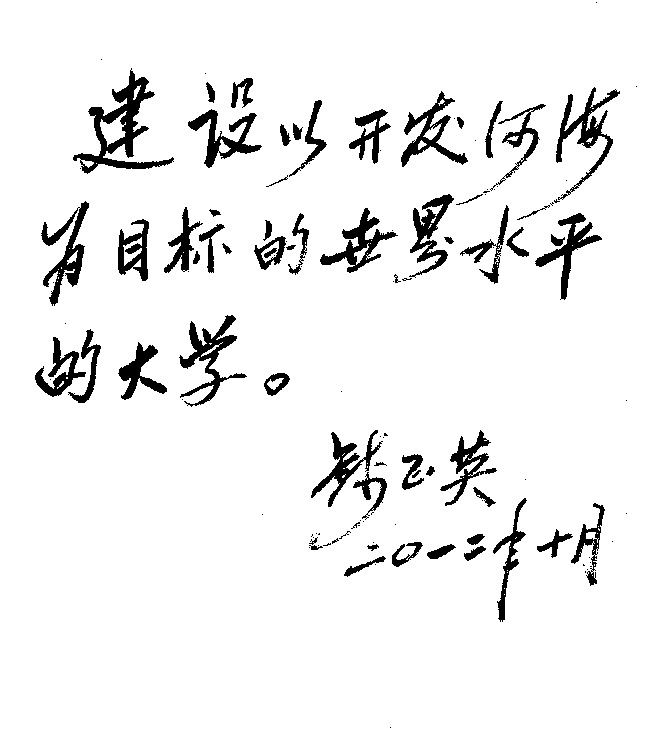 钱正英院士的题词是:“建设以开发河海为目标的世界水平的大学”;