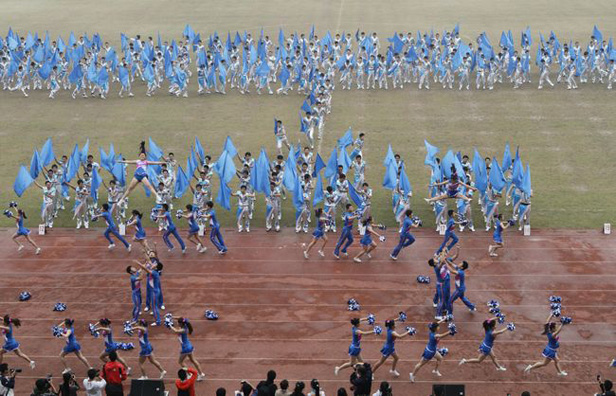 团体操表演同时也拉开了我校第四十八届田径运动会暨第十四届老年人运动会的帷幕。朱拓书记宣布运动会开幕,鞠平副校长致开幕词,王济干副书记主持开幕式。