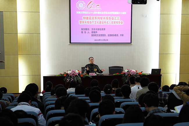 11月2日,国务院文史馆馆员、全国政协委员、著名作家梁晓声教授应邀来我校作了一场题为“文化与深化改革”的报告。河海大学党委副书记王济干主持报告会。