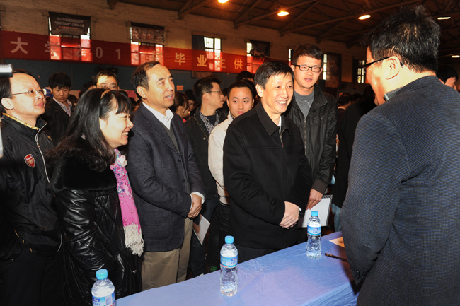 11月14日,我校举办2013届毕业生供需洽谈会。校党委书记朱拓、副书记王济干到洽谈会现场指导工作,并与用人单位负责人及应聘学生亲切交谈。