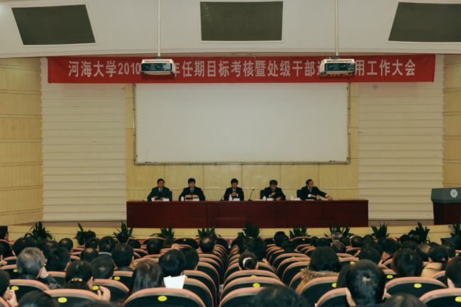 11月21日,河海大学召开2010—2012年任期目标考核暨新一任期处级干部选拔任用工作大会。参加会议的有校领导、副高及以上专业技术人员、正科级及以上干部、民主党派负责人、党支部书记等。