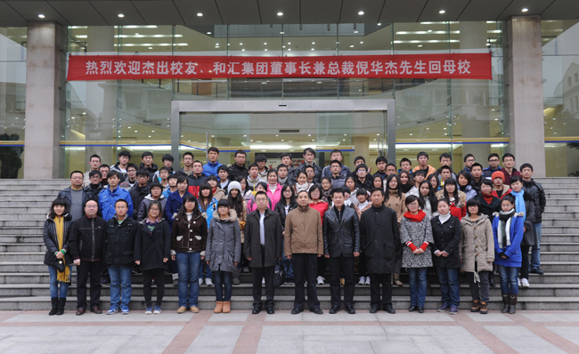 王济干副书记代表河海大学全体师生表达了对和汇投资集团以及倪华杰董事长的感谢与美好祝愿。倪华杰董事长介绍了自己的创业经历,鼓励学生实践与学习相结合,勇于多方位尝试,不断发现和挖掘自己的潜能。