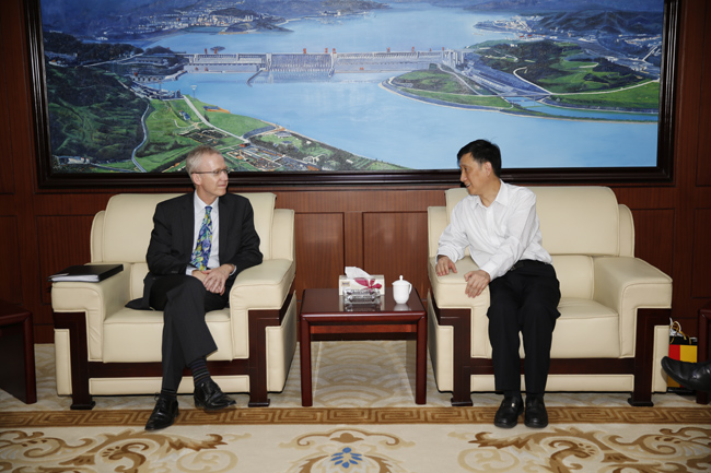朱拓书记(右一)与保罗·约翰森校长(右二)会谈