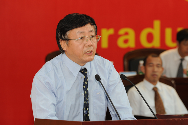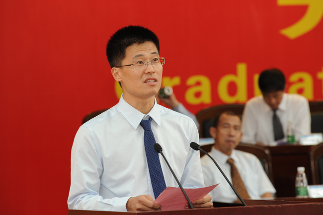 导师代表王义刚教授寄语同学们要明确目标,让学术思维和学术精神在人生路上始终相伴。环境学院2010级博士研究生张文龙和公共管理学院2013级硕士研究生张天娇分别作为在校生和新生代表先后发言。