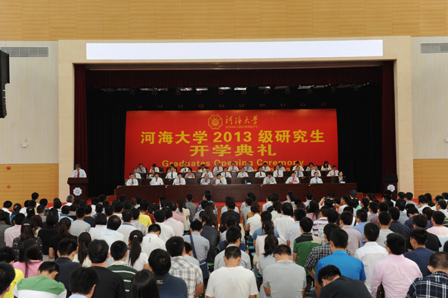 开学典礼由朱跃龙副校长主持,研究生院常务副院长董增川介绍了出席典礼的领导和嘉宾。各学院及学校相关部门负责人、导师代表与3000余名博硕士研究生参加了典礼。