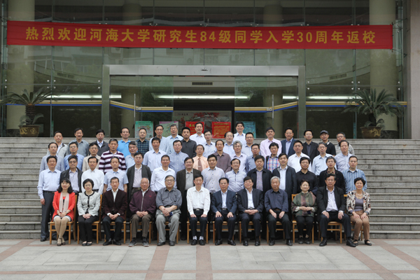 朱拓书记对返校校友表示热烈欢迎,徐辉校长介绍了学校发展情况,朱跃龙副校长介绍了研究生教育情况,校友会姚纬明秘书长介绍了百年校庆筹备工作。我校当年任课和指导教师河海大学原校长姜弘道教授、周氐教授、芮孝芳教授以及原研究生部党总支书记张士英老师祝愿校友们事业有成,身体健康,并希望校友继续努力取得更大成绩。