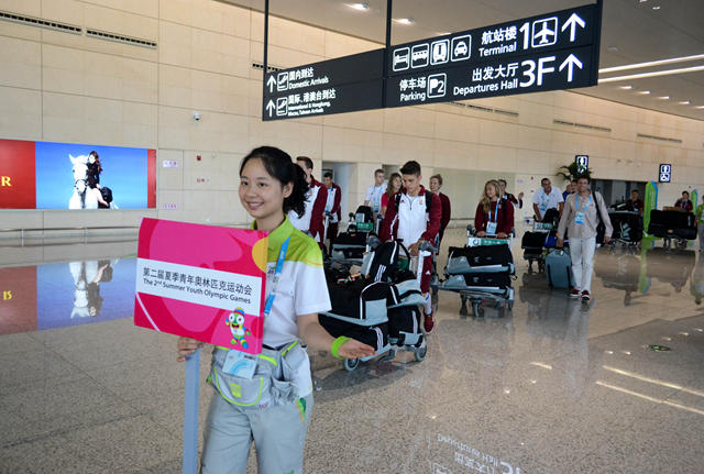 由546名志愿者组成的青奥志愿者抵离团队分属三地六组,分别为北京组、上海组、禄口机场组、南京火车站组、南京南站组和OTA组。机场和火车站志愿者负责客户群抵达、出发和换乘服务,OTA组协助国际奥委会官方授权旅行社官员,为注册客户提供往来宁沪的班车服务。560名志愿者组成的交通团队,则主要负责注册客户群往返机场、车站等口岸和官方酒店之间的抵离随车服务,以及赛时预约用车、要客用车服务和为开闭幕式等提供交通调度、随车服务。这两个团队所承担的是典型的“迎来送往”的工作。