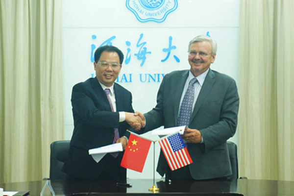 徐辉校长(左一)和史蒂文·威尔思所长(左二)签署共建备忘录