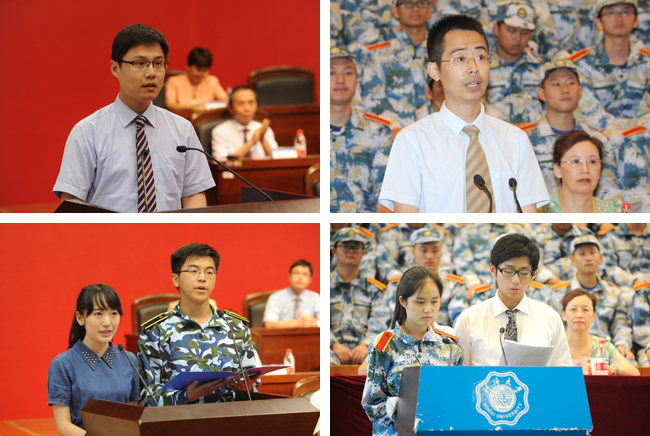 教师代表沈扬副教授和庞庆华副教授结合自身经历和执教经验,谈了大学与中学在教学内容和执行方式以及处世哲学和践行作用上的两个重要区别,并代表广大教师寄语新生要注重砥砺品格,全力以赴、用心打拼,为自己的美好人生奠定坚实的基础。新、老学生代表献辞,表示他们将珍惜机遇,以百倍的信心投入学习、努力成才,为学校建设、社会发展做贡献。