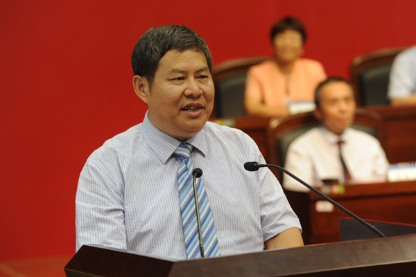 典礼嘉宾、河海大学杰出校友、黄河水利委员会信息中心主任娄渊清致辞
