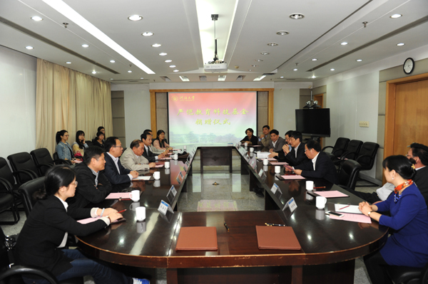 朱拓书记和徐辉校长代表学校接受严以新副主席向河海大学教育发展基金会的捐赠,并向严以新副主席及其学生颁发了捐赠证 书。陈国平教授和基金会秘书长黄林楠共同签署了捐赠协议。仪式上,师生代表还就继承和发扬严恺精神,做好严恺教育科技基金募集等工作进行了交流。