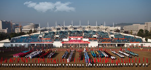 开幕式上,1600多名2014级本科新生表演了大型团体操《快乐的河海人》,气势恢宏节奏明快,充分展示了河海学子青春洋溢的活力、朝气蓬勃的精神风貌、团结奋发的凝聚力和昂扬向上的风采,把开幕式现场气氛推向了高潮。赛场上,师生们以饱满的热情迈开了竞技角逐和刷新纪录的步伐,为期一个月的河海大学第六届体育文化节也在热烈欢快的气氛中正式拉开了帷幕。(文/刘桂清 图/孟凯 金楠)