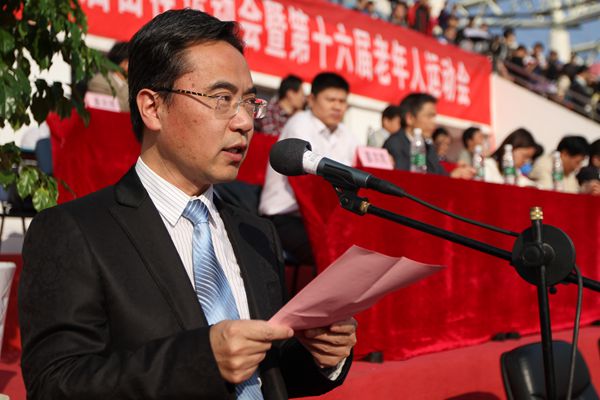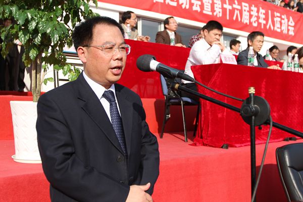徐辉校长宣布第五十届田径运动会暨十六届老年运动会开幕。