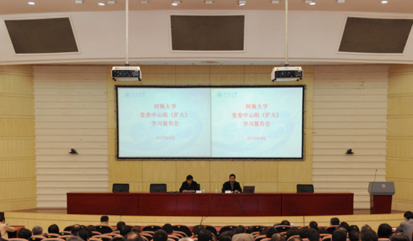 4月8日,河海大学举行党委中心组(扩大)学习报告会,邀请江苏省委宣传部部务委员双传学教授作了《深刻领会“四个全面”战略布局》的专题辅导报告。报告会由校党委书记朱拓主持。