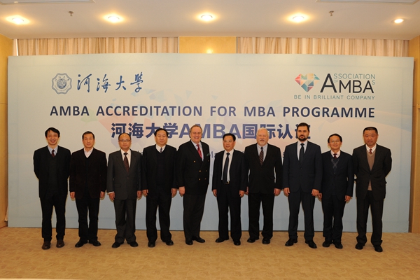 河海大学商学教育国际认证工作启动于2010年, 2012年4月、2014年1月两次接受AMBA国际认证专家辅导,2015年3月,AMBA国际认证专家组对河海大学MBA项目进行现场评估,并与MBA学员、校友、教师和雇主代表进行深入交流,专家组对河海大学MBA项目质量给予了充分肯定,一致认为其达到了AMBA认证标准的要求。未来,在AMBA认证体系内,河海大学MBA项目可实现与全球超过110个国家(地区)MBA项目的学分互认。河海大学也是江苏省内第一所通过AMBA国际认证的高校。