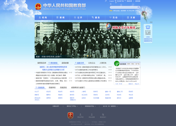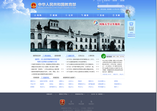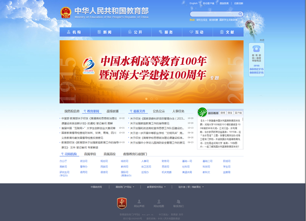 10月26日至27日,教育部政府门户网站在主题焦点图和新闻专栏开设专题,连续报道河海大学百年办学历史和成就,教育部“两微一端”平台也对我校办学历史和成就进行相关报道。