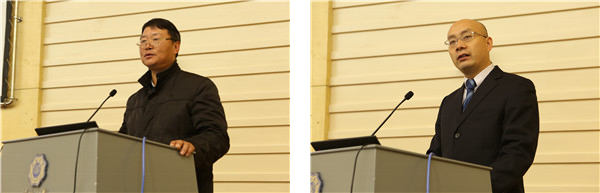 招生组负责人代表丁寿祥(左)、魏有兴(右)作本科招生工作交流发言