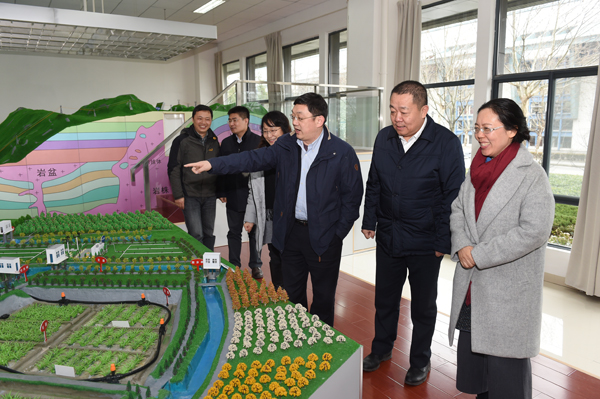 邬国强副主任(右二)一行现场考察,唐洪武书记(右三)和陈星莺副校长(右一)陪同