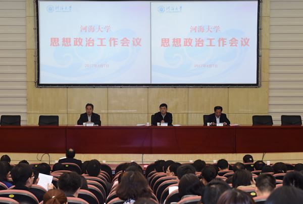 4月7日,学校召开思想政治工作会议,深入贯彻落实全国高校思想政治工作会议精神,安排部署学校今后一个时期的思想政治工作,为加快推进学校“双一流”建设奠定坚实的思想基础,提供有力的政治保证。校党委书记唐洪武作报告,校长徐辉主持会议,校党委副书记郭继超就学校《全面贯彻落实<加强和改进新形势下高校思想政治工作的意见>实施方案(征求意见稿)》做说明。