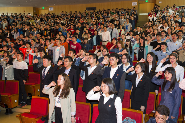 大会由校团委副书记杨天主持,宣传部、教务处、研工部、学工部、工会等单位负责人,各学院分管共青团工作的党委书记、副书记,青年师生代表1000余人参加了大会。(文/朱乔 图/孟凯)