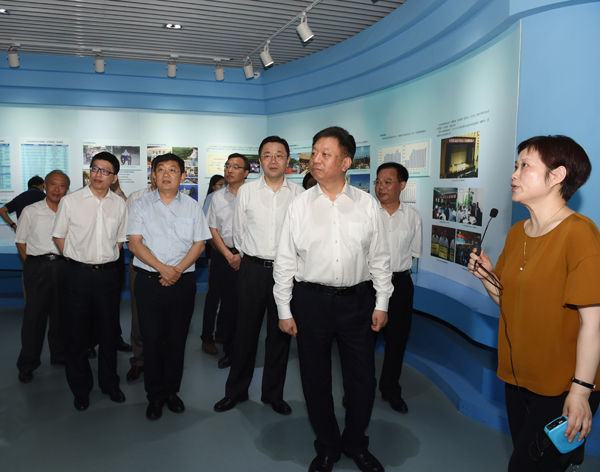 王宏局长、杨岳副省长一行首先参观了河海大学校史馆,对学校百年来在人才培养、科学研究和社会服务等方面取得的成绩给予充分肯定。