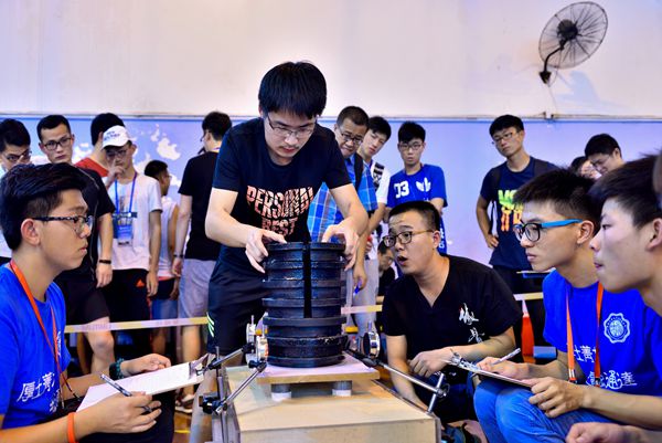 本次赛题以建造基桩为主题,竞赛内容包括模型设计、模型制作、模型测试三个部分。决赛要求学生在2个小时内,用提供的砂子、纸板和模型箱等材料完成桩基制作和填埋,制作完成后在桩基础上统一放置75kg砝码进行加载,评委会根据模型设计报告、用纸量、沉降量和模型制作耗时决出成绩。