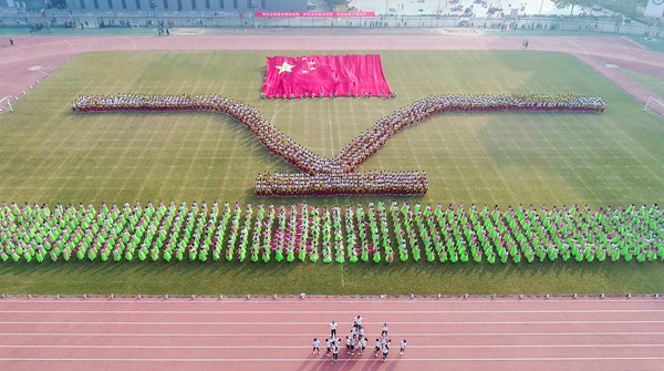 开幕式上,3000余名师生自编自导自演了大型团体操《歌唱祖国》,青春的步伐、恢弘的气势、靓丽的身姿,充分展现了河海人勇往直前、自信奋进的昂扬风采,诠释了“大哉河海奔前程,毋负邦人期”的价值追求。(文/王寿辉 图/孟凯、刘顺、彭国平)