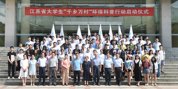 与会领导向参加活动的环保志愿者代表授旗并赠送了环保科普宣传材料。河海大学环境学院冯昌龙同学作为志愿者代表发言。河海大学团委、学生处、环境学院有关负责人参加了活动。