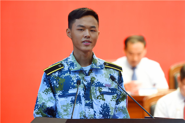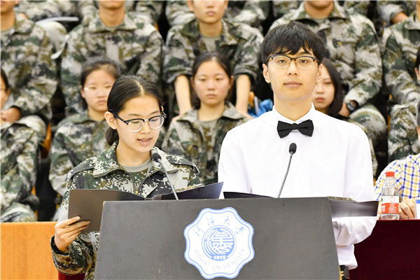 教师代表法学院陈广华教授和机电工程学院倪福生教授对2018级本科新同学表示最诚挚的祝贺和最热烈的欢迎,并结合自身经历和执教经验,建议同学们在大学阶段的学习中要学习知识、增长见识、拓宽视野、胸怀大志、学会感恩。新生代表献辞,表示将立鸿鹄志、做奋斗者,求真学问、练真本领,用青春和理想书写下属于自己的青春故事。