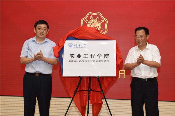 校党委书记唐洪武致辞,校长徐辉宣读学校成立农业工程学院的文件。他们共同为农业工程学院揭牌。