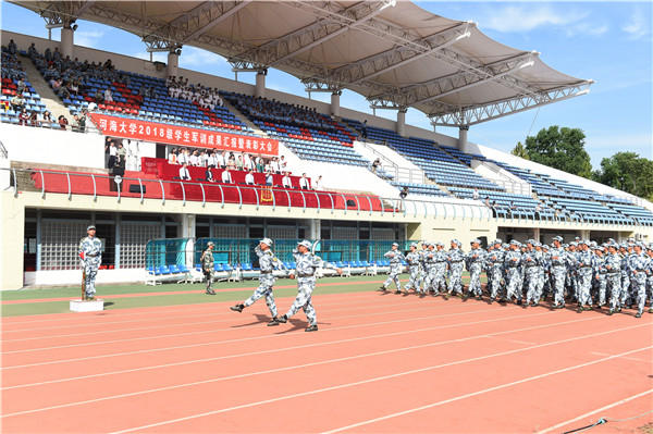 2018级学生军训旅全体成员,军训教官,各学院领导,2018级本科生辅导员,高年级带训国防生,参加了大会。(文/孙瀚,图/朱昊、彭国平)