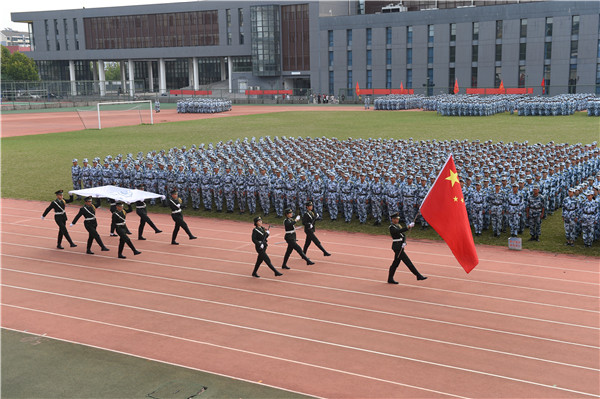 大会在庄严的国歌声中开始。会上,校长徐辉向承训部队赠送了锦旗,向全体教官在军训中的辛苦付出表示了由衷的感谢。