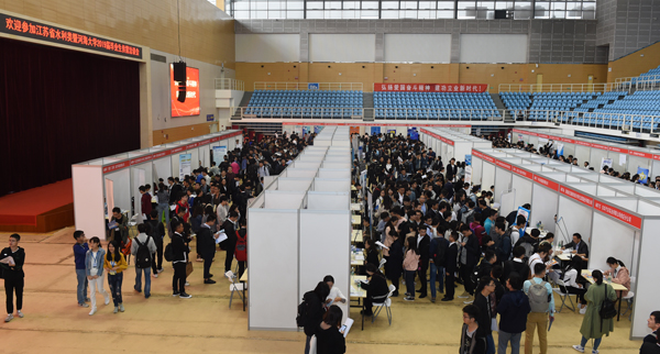 为稳步推进2019届毕业生就业工作的开展,河海大学扎实推进“就业质量提升工程”,针对学生的不同需求,先后开展了公务员、选调生、事业单位、重点行业单位和水利类单位招考培训及综合能力素质培训,不断提升就业能力。今年9月份秋季招聘启动以来,学校已举办了380余场专场招聘会和5场大中型招聘会,助力学生实现个人职业梦想。学校坚持就业优先战略和积极就业政策,努力让每一位毕业生都能走上理想的工作岗位,实现更高质量和更充分就业。(文/沈洁 图/朱昊)