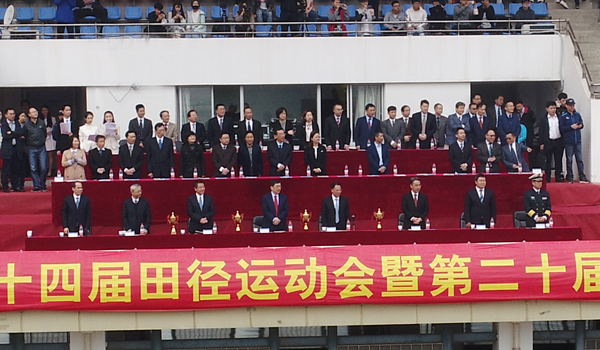 10月26日,全校师生喜迎建校103周年之际,河海大学举行第五十三届田径运动会暨第十九届老年人运动会开幕式。校党委书记唐洪武,校长徐辉,副校长徐卫亚,党委副书记郭继超,总会计师张兵,副校长许峰,副校长郑金海,中国人民解放军驻河海大学选培办主任乔光玉大校以及各学院、各部门负责人出席开幕式。