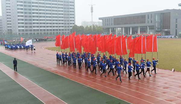 校党委书记唐洪武为获得最佳入场方队代表颁发奖杯。校长徐辉宣布河海大学第五十四届田径运动会暨第二十届老年人运动会开幕。副校长徐卫亚宣布了“最佳入场方队”评选结果。校党委副书记郭继超致开幕词。他指出,在过去的一年中,我校体育工作和体育文化建设成绩突出。一年一度的校运会是全校师生展示健康美和体育精神的重要舞台,我们要切实学习贯彻全国教育大会精神,落实全民健身国家战略,促进全民健身与全民健康深度融合,把体育事业融入学校“双一流”建设的大格局中,把发展体育事业作为学校文化传承与创新的重要组成部分,弘扬中华体育精神,弘扬体育道德风尚,在我校“双一流”建设的新征途上团结拼搏,再创辉煌。