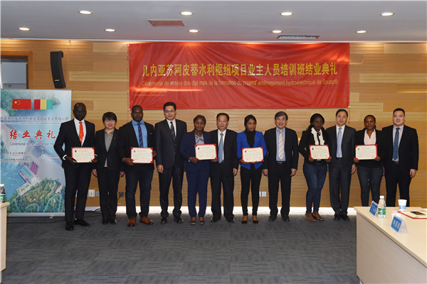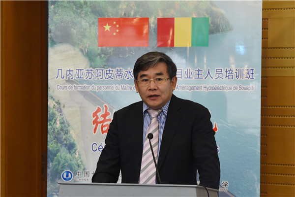 徐辉校长向圆满完成培训任务的各位学员表示诚挚的祝贺,向为培训班付出辛勤劳动的合作单位和个人表示衷心感谢。他指出,近年来学校充分发挥水利特色和学科优势,围绕国家“一带一路”倡议和“走出去”发展战略,搭建与行业、企业合作的政产学研合作平台,积极贡献河海力量。徐辉校长希望以此次培训项目的成功实施为起点,进一步加强交流合作,全面提升服务世界水电发展的水平和能力,并希望学员回国后不忘初心、坚持理想,勤于学习、厚积薄发,牢记使命、不负众望,将所学先进的水电专业知识积极服务几内亚的水电事业和经济建设,并作为中几之间合作与交流的使者,为深化中几友谊而努力。