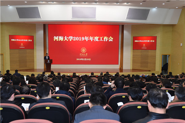 新年伊始,万象更新。2月23日,河海大学召开2019年年度工作会议,部署落实2019年重点工作。校党委书记唐洪武、校长徐辉先后主持会议。校领导,校长助理,全体中层干部及有关单位负责人,党外代表人士,二三级教授代表,人才计划入选者,党代会及教代会部分代表,部分教师党支部书记、系所负责人和科级干部参加会议。