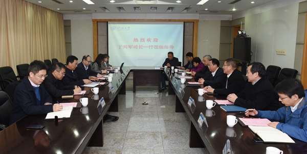 近日,水利部国际合作与科技司巡视员于兴军,长江委国科局副局长李中平,澜湄水资源合作中心副主任董雁飞一行来我校调研,徐辉校长、张兵总会计师出席座谈会,徐卫亚副校长主持会议。