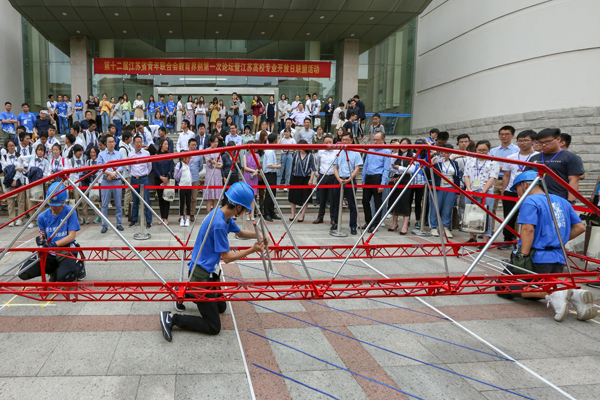 论坛同步开展了江苏高校专业开放日联盟活动。活动由河海大学土木工程、南京大学临床医学和地质学、南京农业大学农学和植物保护以及南京邮电大学通信工程等四所高校的六个专业协同发起,在各自校区对来自江苏省镇江中学、宜兴中学等地的中学生开展专业开放日教育。在河海大学主活动场地,代表们现场体验了丰富多彩的河海大学土木工程专业开放日活动,并通过实时连线观看了其他学校专业开放日的活动场景。联盟活动对中学生从认知、实践等层面科普大学专业,旨在建立起一个“中学生、大学生、中学教师、大学教师”联动的实践共同体,满足中学生了解大学专业、感知高校生活的需求,促进中学生对于学业生涯的合理规划,这也是论坛主题“青春共享计划•青联智汇—融智施教,教学相长”的生动写照。