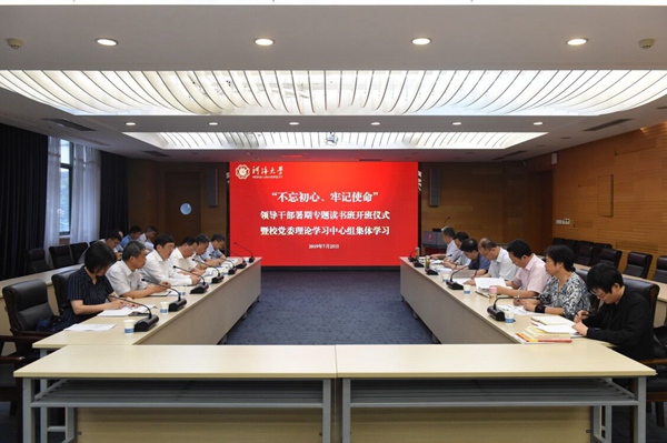 7月25日,学校举行领导干部“不忘初心、牢记使命”暑期专题读书班开班式暨校党委中心组集体学习。深入学习习近平总书记在主持中央政治局第十五次集体学习时的重要讲话精神和教育部党组通知要求。校党委书记唐洪武主持会议并讲话,校领导和校党委理论学习中心组其他成员参加学习。教育部党建工作联络员、江南大学原党委副书记、纪委书记周小浦全程指导。