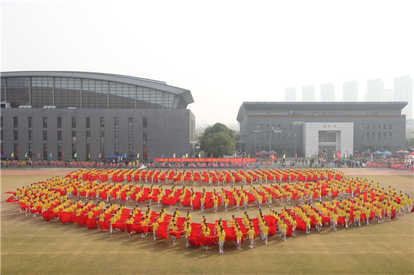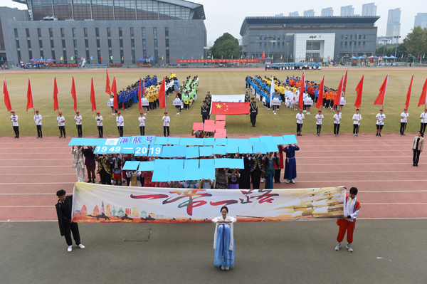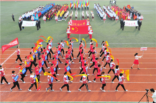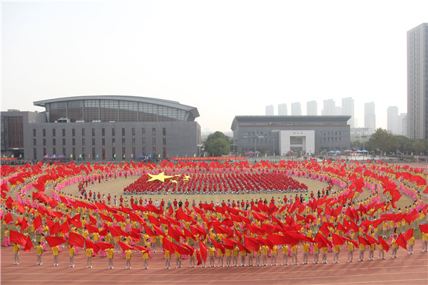 开幕式上,2300余名师生自编自导自演了大型团体操《中国 鲜红的太阳永不落》,祝福伟大的祖国繁荣昌盛。伴着豪情壮志的音乐,同学们迈着铿锵有力的步伐,舞动朝气蓬勃的身姿,充分展现了河海人继往开来、勇创一流的昂扬风采,诠释了“大哉河海奔前程,毋负邦人期”的价值追求。