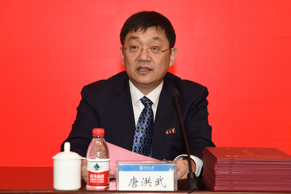 唐洪武书记在讲话中指出,学校深入学习贯彻习近平新时代中国特色社会主义思想和党的十九大精神,全面贯彻落实全国教育大会和全国高校思想政治工作会议精神,贯彻落实学校第十三次党代会的决策部署,凝心聚力推进“双一流”建设,在上级组织、社会各界、海内外校友的关心支持下,在全体师生员工的共同努力下,学校各项事业取得了可喜的成绩,为党和国家培养了一大批优秀人才,办学水平和办学层次显著提升,社会声誉和影响力持续扩大。他表示,立足新时代,面向新百年,学校将全面贯彻党的教育方针,坚持面向“四个服务”,坚持落实立德树人根本任务,坚持扎根中国大地办一流大学,加快构建和完善具有河海特色的高水平人才培养体系,致力培养担当民族复兴大任的时代新人,以新时代奋进之笔书写学校新百年发展的华丽篇章,为实现“两个一百年”奋斗目标和中华民族伟大复兴贡献河海力量。