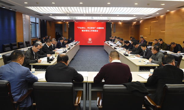 校领导,校“不忘初心、牢记使命”主题教育领导小组及办公室成员,整改落实工作责任单位和部门负责人参加了会议。(文/刘桂清 图/朱昊)