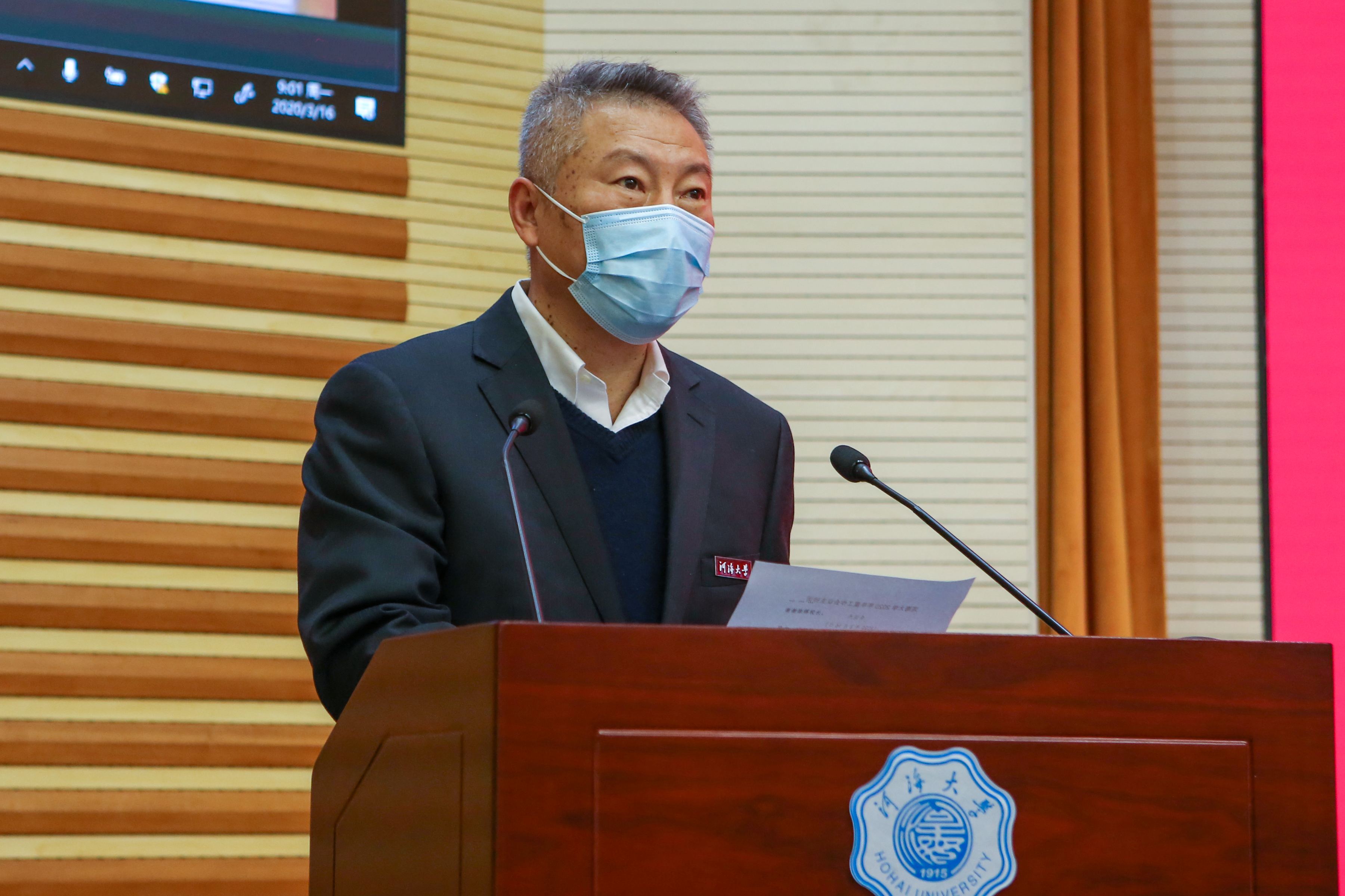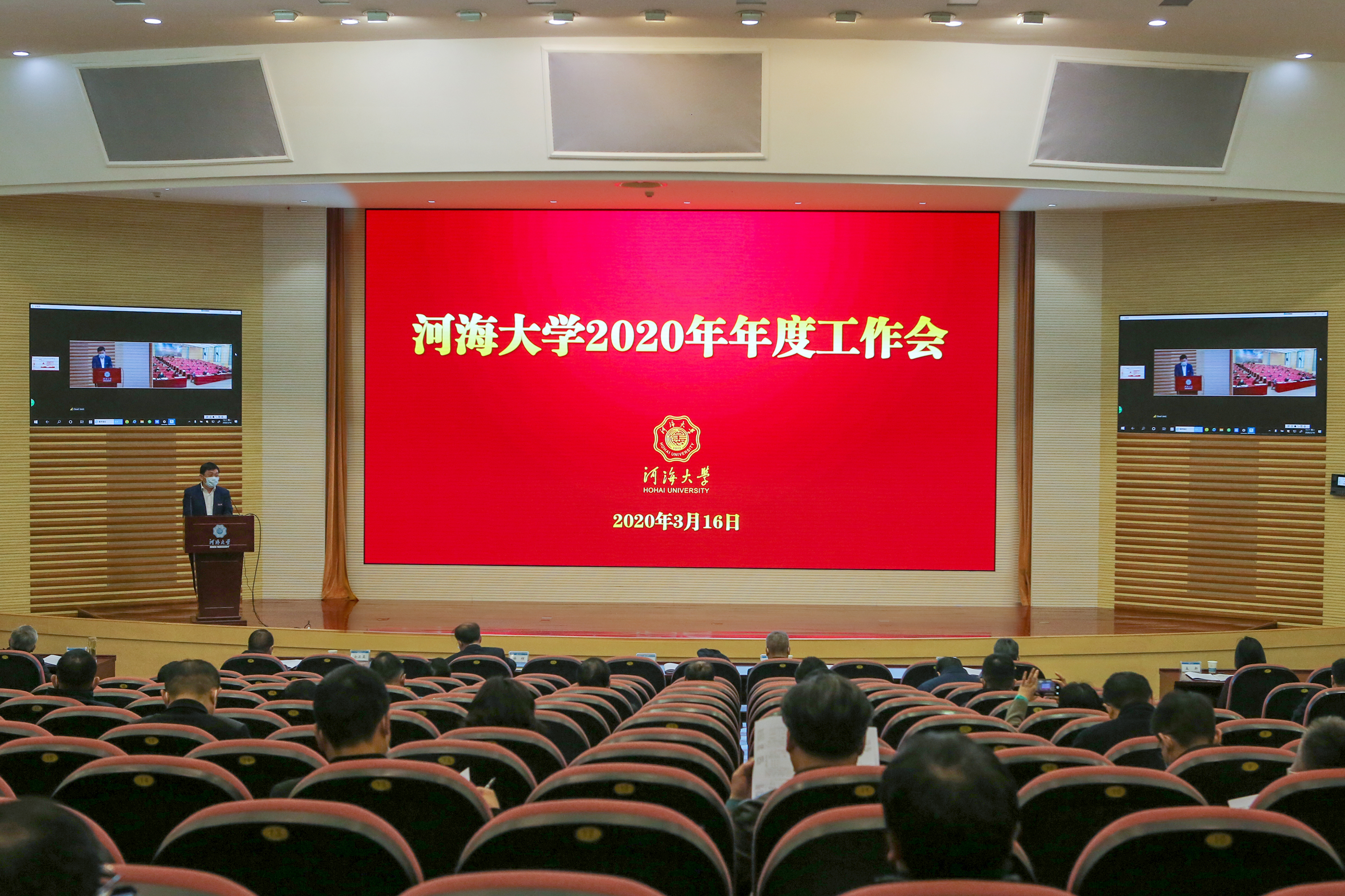 3月16日上午,河海大学召开2020年年度工作会议,通报、部署疫情防控工作,明确未来四年发展思路举措,部署2020 年主要工作。常务副校长李俊杰主持会议,全体校领导、校长助理、两委委员、中层干部、党外代表人士、教师代表等参加了会议。根据疫情防控要求,会议在闻天馆108设立主会场,在各学院、常州校区通过视频系统设立分会场。