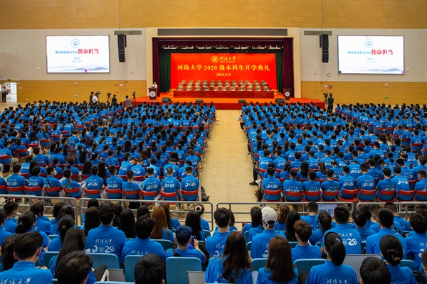 9月9日,2020级本科生开学典礼后,校党委书记唐洪武以《新时代河海青年的使命担当》为题,为5203名2020级本科新生讲授开学第一堂思政课。