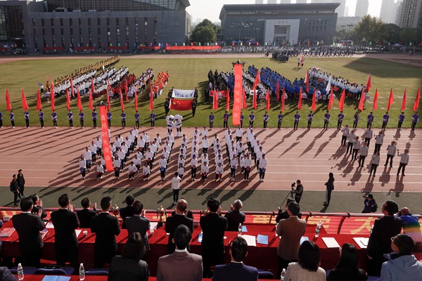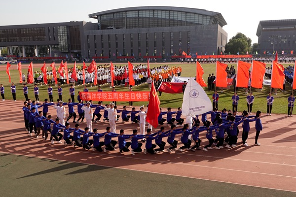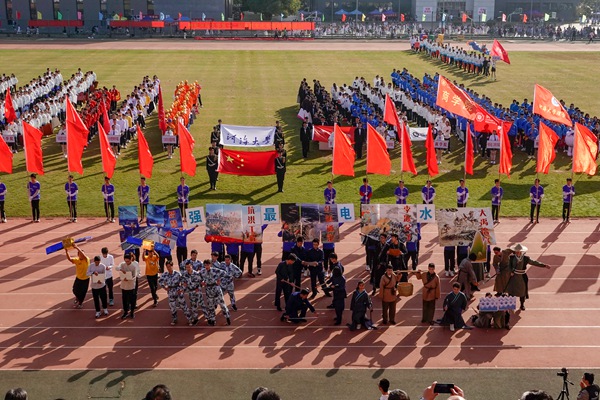 一年一度的校运会是体育教育宣传和动员的重要舞台,今年是特殊的一年,本届运动会开幕式以《爱我中华》为主题,1500余名师生自编自导自演了由《大爱中华》《大哉河海》《大美未来》三个部分组成的大型团体操,彰显祖国的强大和团结,祝福祖国繁荣和昌盛。伴着豪情壮志的音乐,同学们迈着铿锵有力的步伐,舞动朝气蓬勃的身姿,充分展现了河海人继往开来、勇创一流的昂扬风采,诠释了“大哉河海奔前程,毋负邦人期”的价值追求。