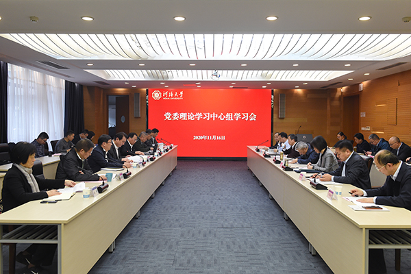 徐辉校长领学了党的十九届五中全会精神,并交流学习体会。他从全会有关情况、全会重要成果、全会精神学习贯彻等三个方面,系统阐述了全会思想精髓,并强调认真学习宣传贯彻全会精神,是当前和今后一个时期政治生活中的大事。他指出,全会的重要成果是审议通过了《中共中央关于制定国民经济和社会发展第十四个五年规划和二〇三五年远景目标的建议》,并强调“十四五”规划建议是由习近平总书记亲自领导制定的,是在坚持发扬民主、开门问策、集思广益中起草的,是经过深入调查、深入思考、深入研究而形成的。《建议》的起草,为在全面建成小康社会基础上,乘势而上建设社会主义现代化强国指明了方向、提供了遵循。他强调,广大党员干部应切实增强政治自觉,迅速掀起学习热潮,准确把握全会精神的精髓要义,真正把思想和行动统一到全会精神上来,紧密结合学校实际,以十九届五中全会精神为指导,加快推进世界一流特色研究型大学建设步伐。